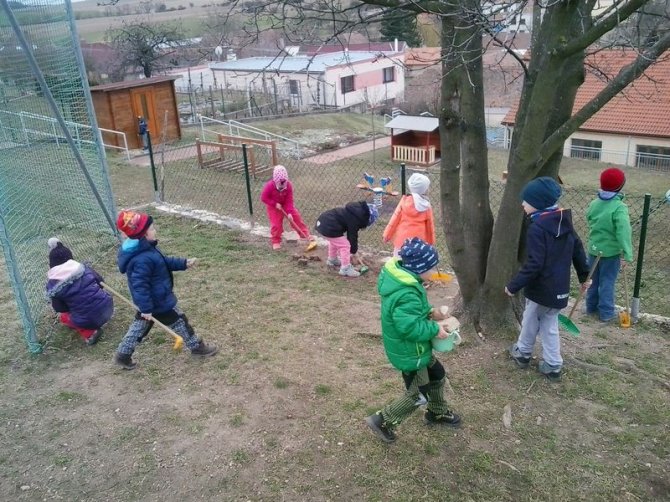 Starší děti na zahradě